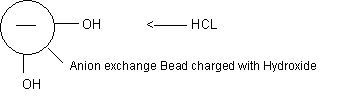 It works by exchanging hydrogen ions for cationic and hydroxyl ions for anionic contaminants in the feedwater. The deionization resins are tiny spherical plastic beads through which the feedwater passes. After a while the impurities replace all of the hydrogen and hydroxyl groups in the resin, and it has to be replaced or regenerated.