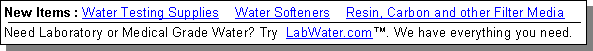 Sediment FiltersCarbon FiltersWater SoftenersReverse Osmosis SystemsReverse Osmosis MembranesStorage TanksIron FiltersMulti-Media FiltersDeionization SystemsUltraviolet SterilizersBacteria filterUltra filtersIon-exchange ResinsFilter MediaCustom filtration productsWater Testing Products