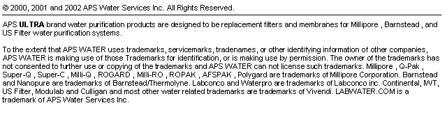 Replacement Filters Millipore systemsBarnstead systemsHardwareLab Water SystemsMillipore BrandBarnstead BrandLabconco BrandOther FiltersHose Barb Filters Inline Filters